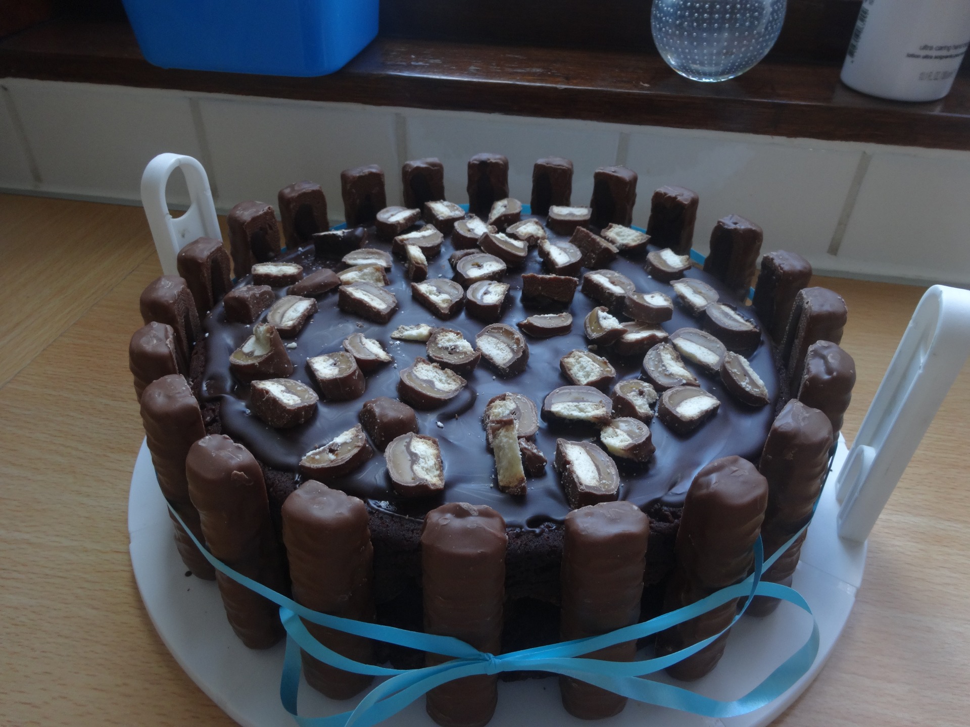 Een echte verjaardagstaart met Twix, Rolo's en brownie!